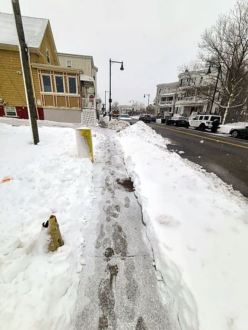 - Sidewalk is blocked by mounds of snow in front of the dunks and is not passable with a stroller.