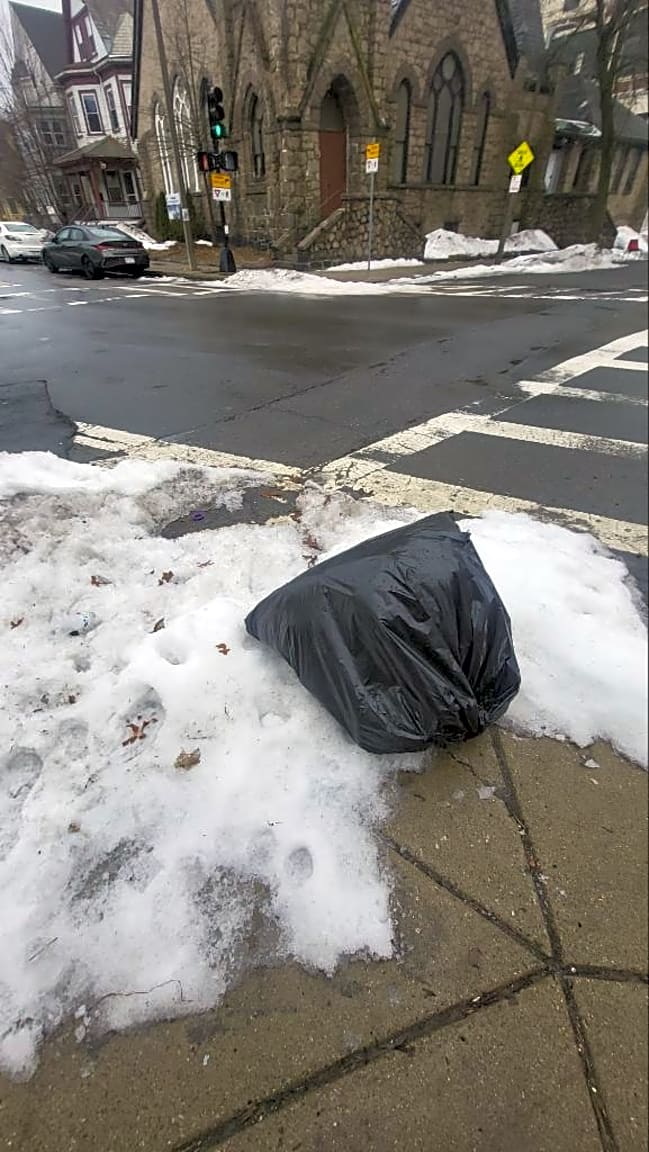 - Trash, blocked crosswalk
