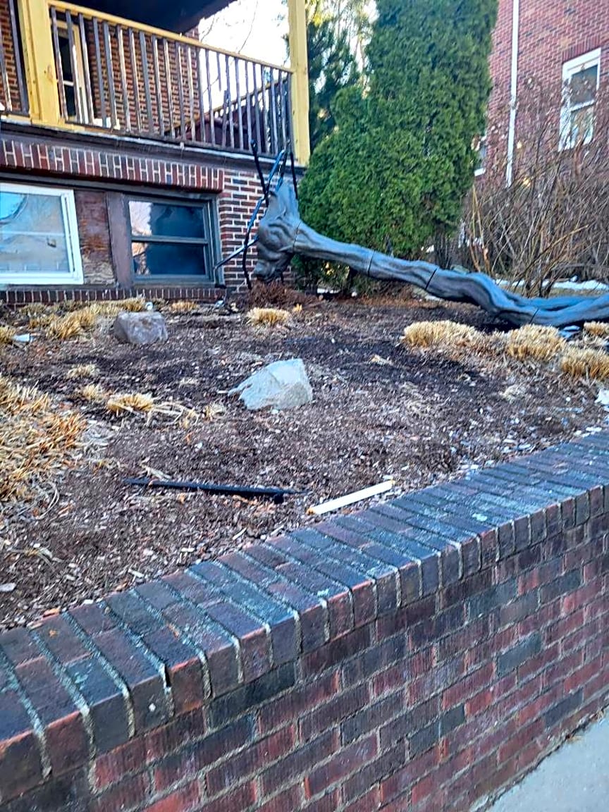 - Loose trash and debris in front yard. Some sort of plastic tree dumped in yard
