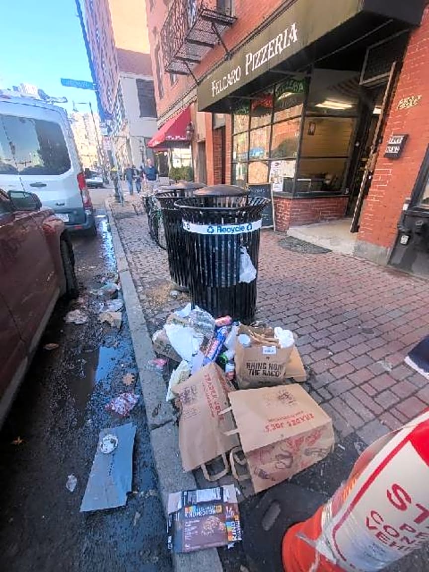- Lots of illegally bagged trash out illegally at 284 Cambridge Street. Thank you.