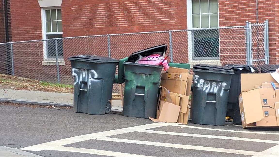 - Okay there’s a wheelchair ramp underneath all that garbage. I use a rollator, and it was very hard to cross this morning. I know it’s trash day, but they can’t keep doing this, it can’t be legal to do this. Trash don’t even get picked up until after 3-3:30! The trash is from #s 3, 5, and 6 Mount pleasant terrace.