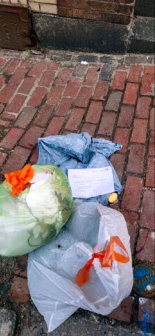 - Rubbish is placed out well in advance of pickup | Details: [Trash is out early.] Exact location: [front]