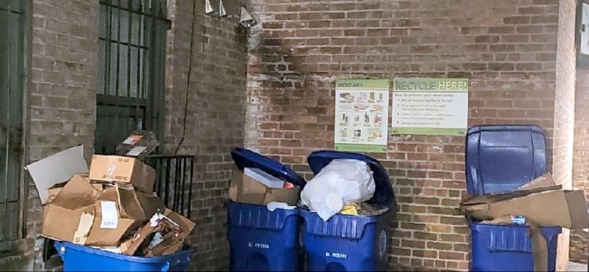 - Overloaded trash barrels in the back of the property