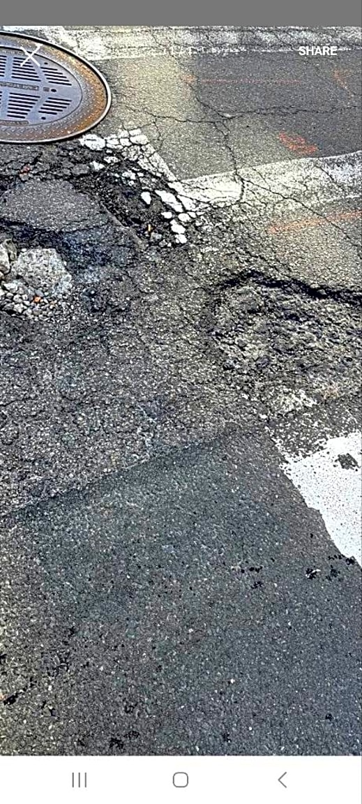 - Constituent reports there is a huge pothole at this location. | Where exactly on the pavement is the pothole: [On Roadway] What is the approximate size of the pothole: [HUGE] Time when pothole noticed: [06:25]