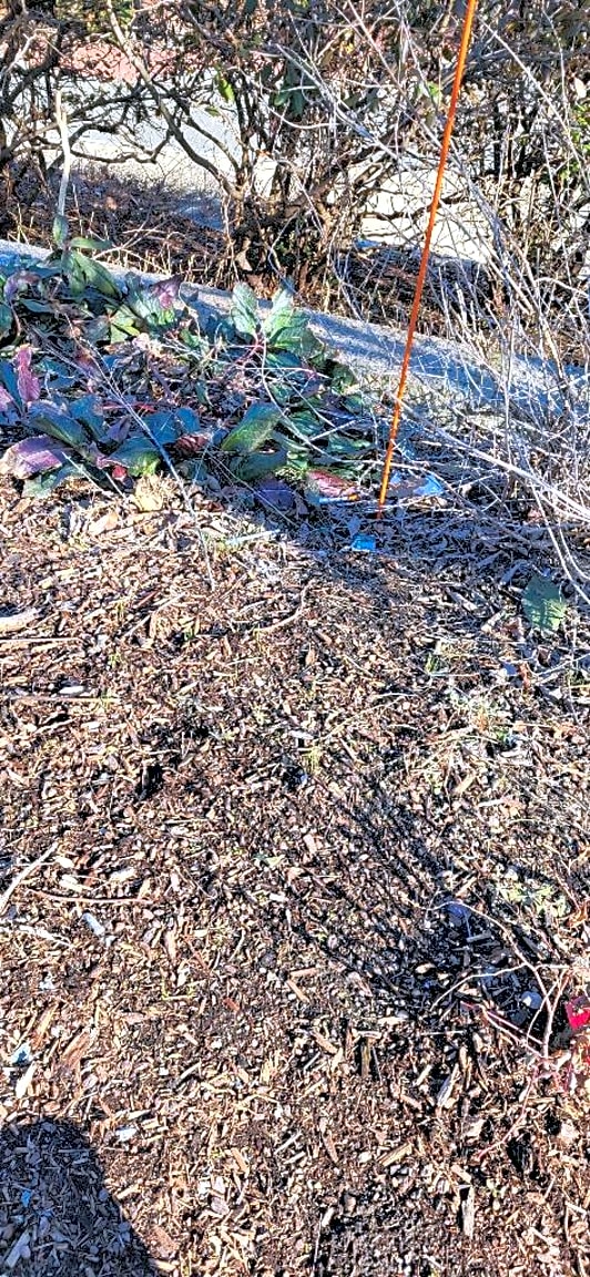 - two needles IV drug abuse debris on the southwest corridor at the end of wellington st and marked by an orange stake