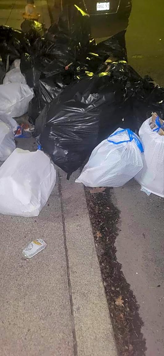- Trash is left out in heaped bags rather than cans - happens every week, the rats get in and spread trash everywhere.