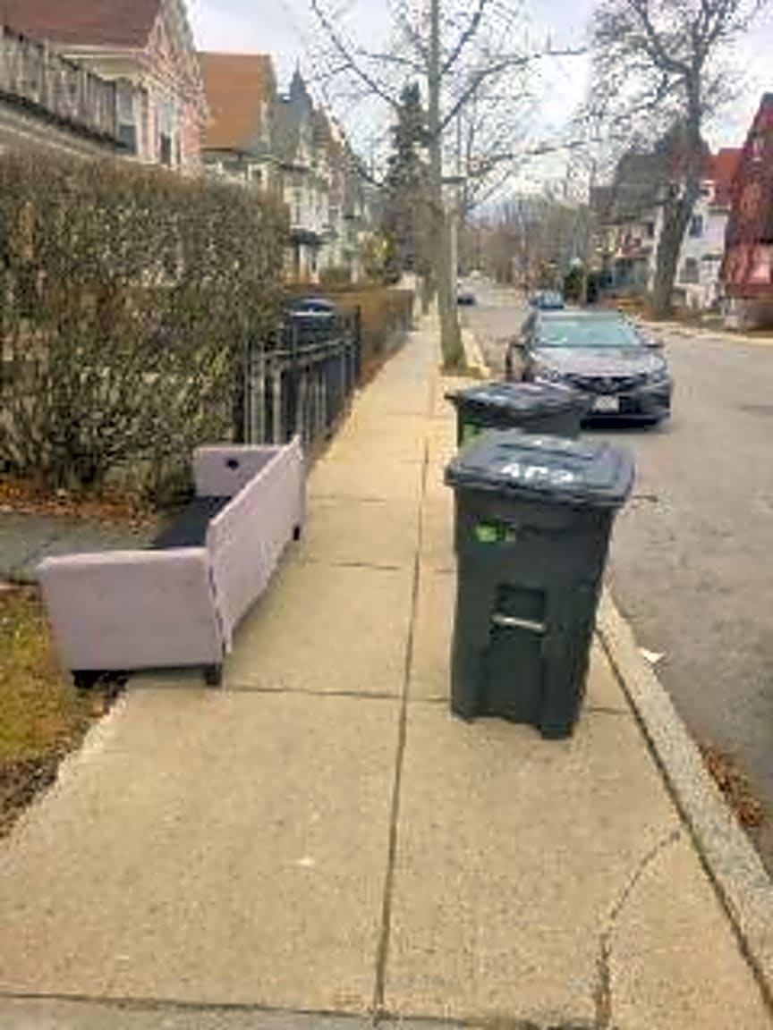 - Rubbish is placed out in unsuitable container | Details: [Constituent states that the trash in front of this address is blocking the sidewalk] Exact location: [sidewalk]