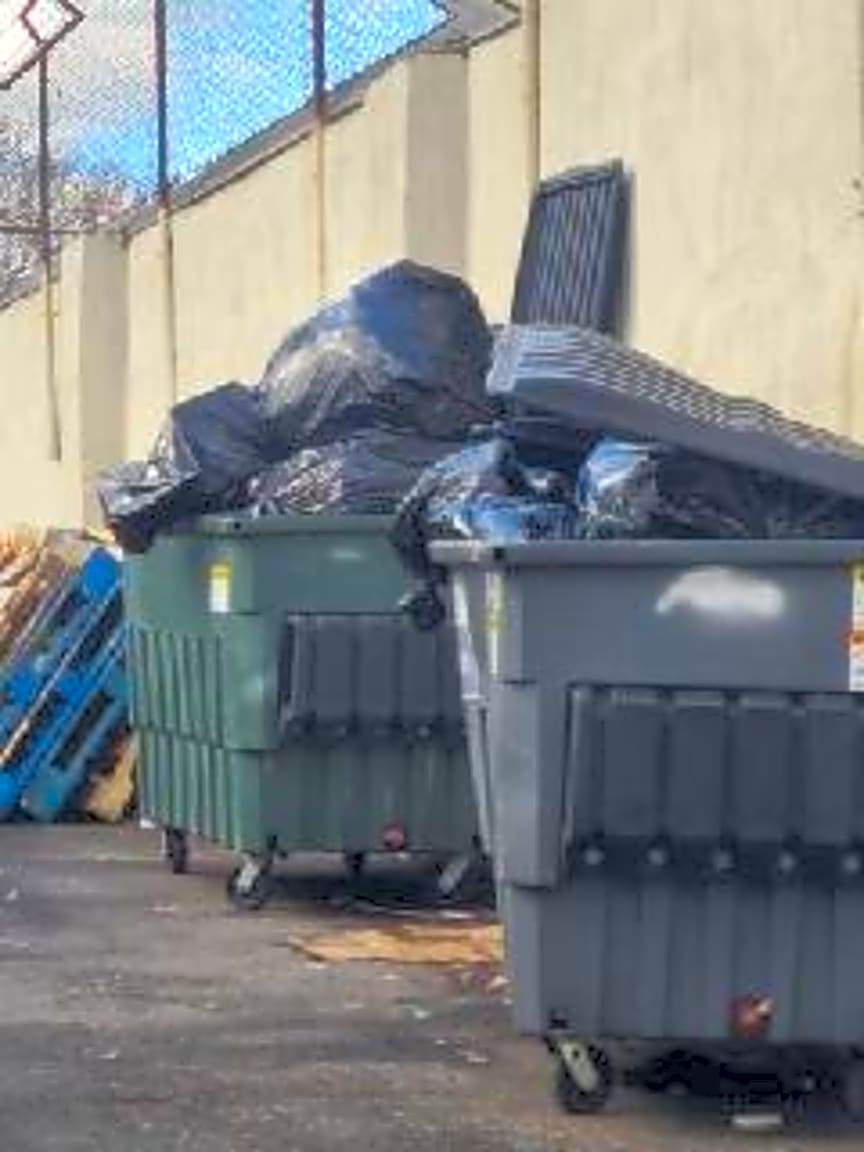 - Overloaded dumpsters in the back of the property