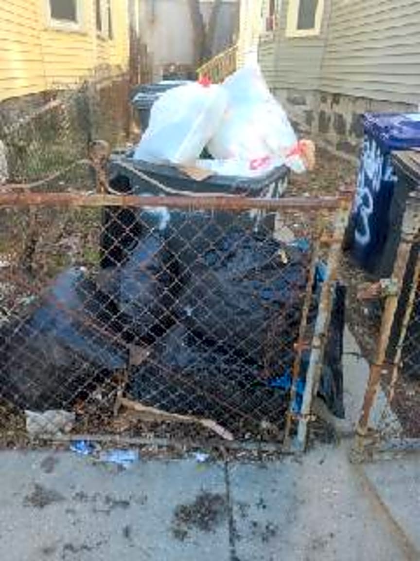 - Other | Details: [The whole yard is full of dog feeces, the trash cand have holes in them. there's all kinds of junk in the back yard old dog pen, bushes and tree stumps that hide the large rats playing in the yard.] Exact location: [whole yard]