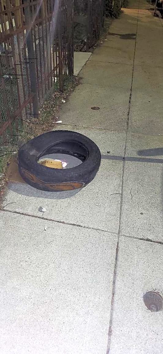 - Trash - discarded space savers continue to litter sidewalks on both sides of Mora St. photonear 91 but several others also left behind. Please remove all