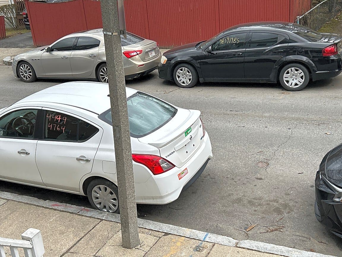 - Three vehicles with no plates parked on page street preventing neighbors from accessing street. Appears that owner of vehicles in yellow house is engaged in car sell business. Can you send someone to remove the cars. WHITE NISSAN SUV, BLACK SUV AND BLACK SEDAN