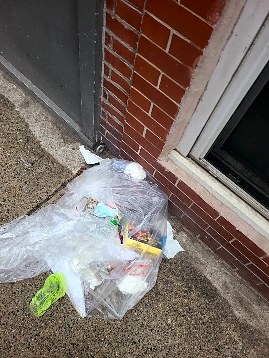 - Bag of trash dumped in front of property. Reports trash dumped in front of other properties on street as well. Caller states it is a frequent occurrence. Suspects trash is coming from across the street. |