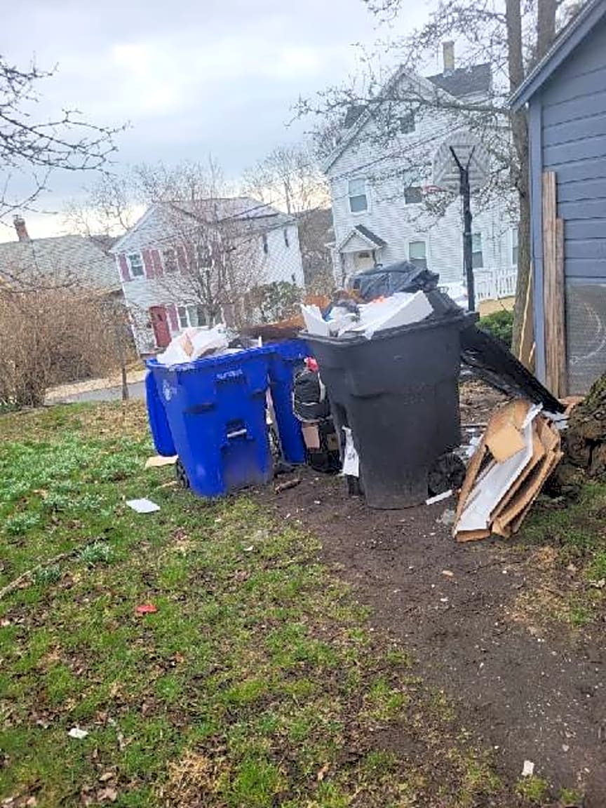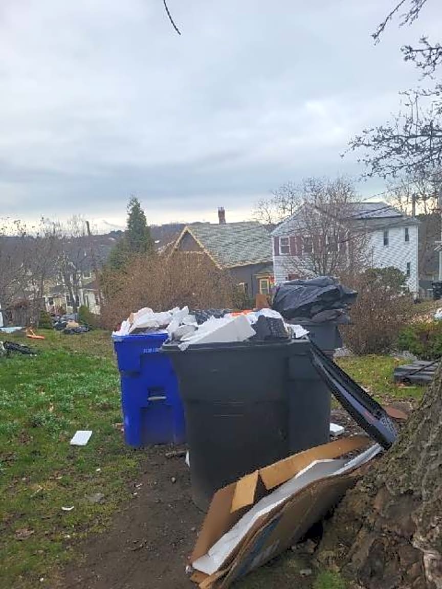 - Neighbor trash over flowing in yard without cover. There is already rat activity in neighborhood