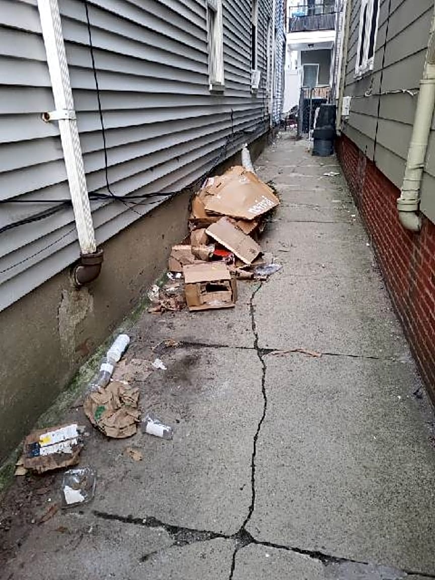 - Trash all over the alley way. this is why we have RATS all over this area. Every week these people do not clean up their trash. It’s time to up the fine then they will start cleaning it.
