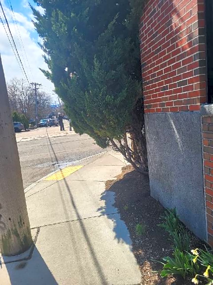 Resolved. Violation issued for overgrown tree on sidewalk.