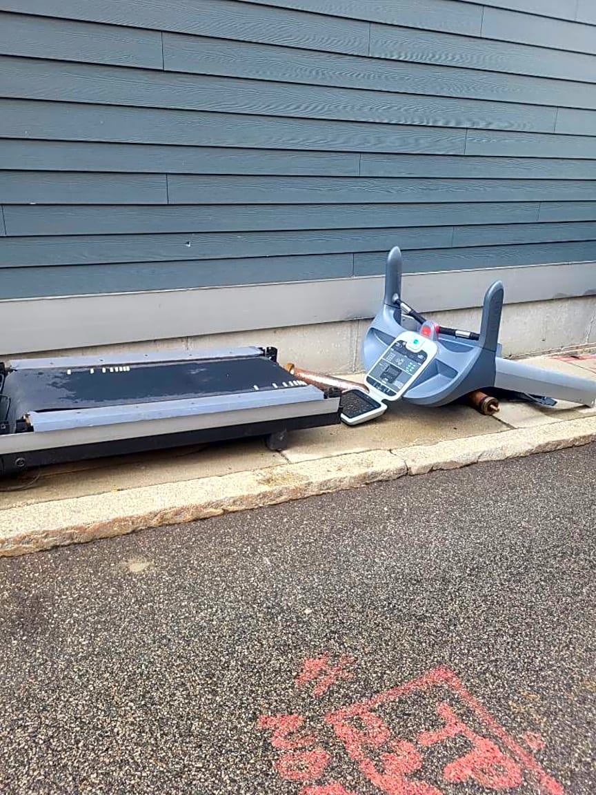 - Old treadmill left on sidewalk. Looks like an old treadmill from Regan’s that just closed on W Broadway.