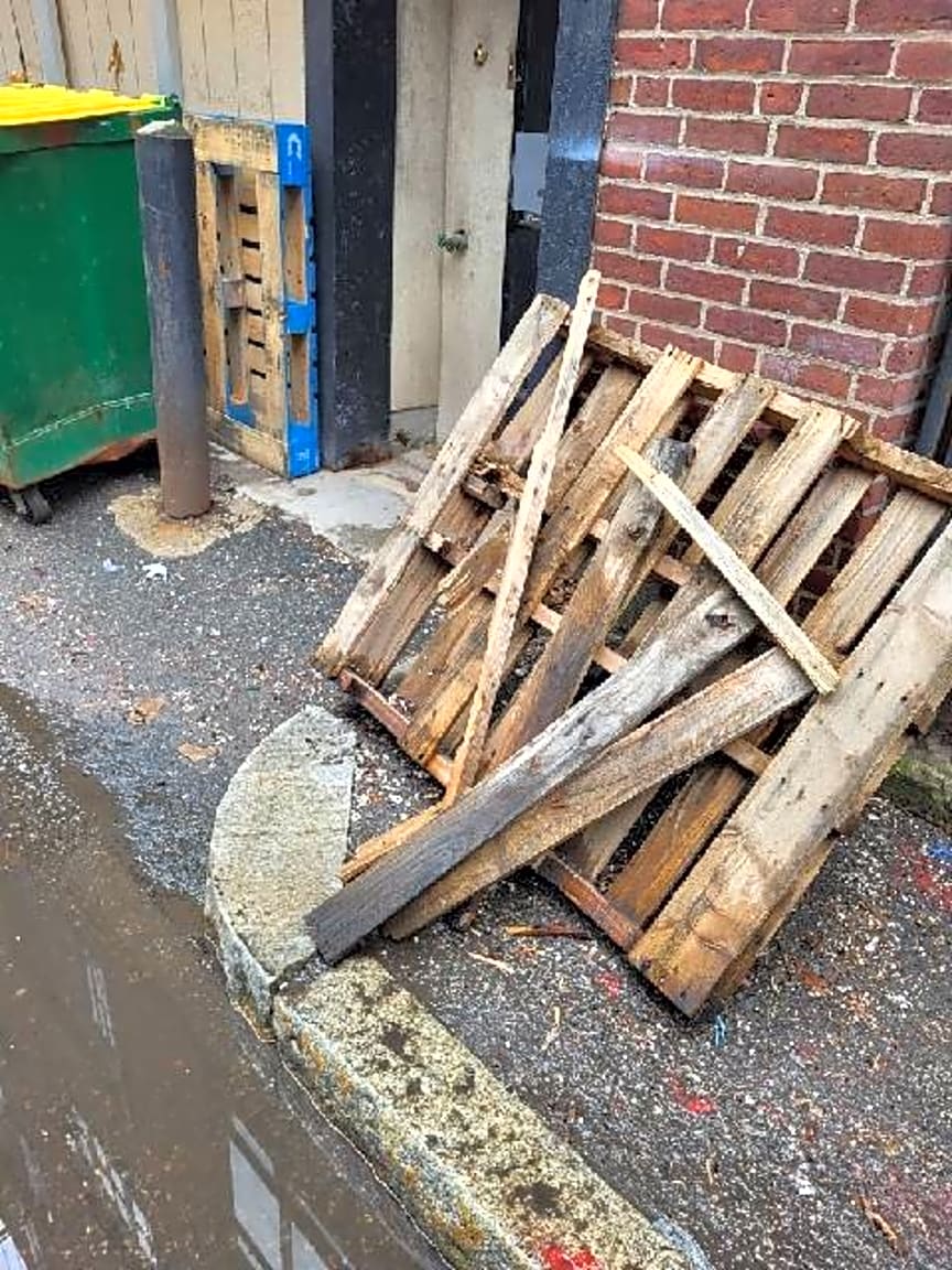 - Trash on curb/broken pallets. 93-95 Newbury street rear in public alleyway 436