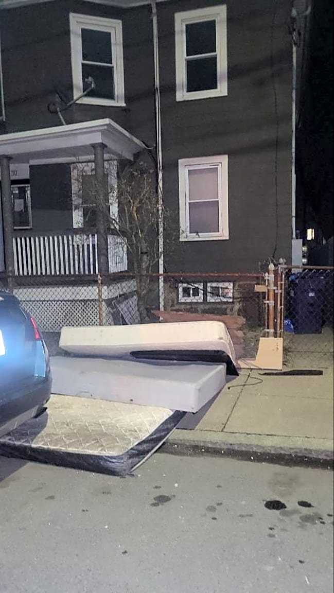 - An inspection at 30 Greenwood St found multiple discarded mattresses blocking part of the sidewalk and curb. The items appear abandoned, stained, and deteriorated, creating sanitation concerns and potential pest issues. Their placement obstructs pedestrian access and poses a safety risk by forcing people toward the street. Immediate removal is recommended, as the condition may violate regulations on illegal dumping and sidewalk obstruction.