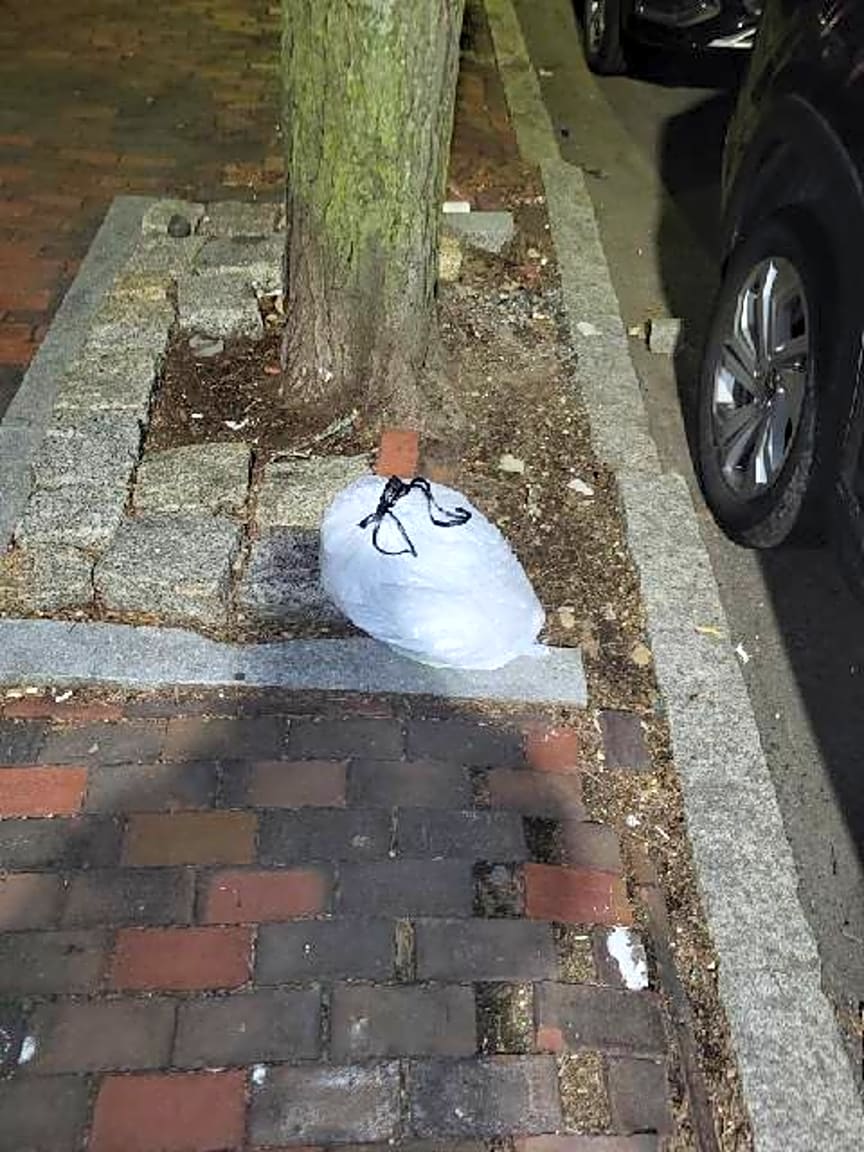 Noted. 1 bag of trash placed out after collections on the sidewalk infront of the property, evidence was found inside and a citation was issued and sent to dpw for removal!