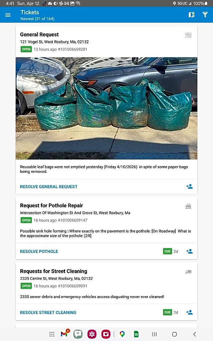 - Reusable leaf bags were not emptied yesterday (Friday 4/10/2026) in spite of some paper bags being removed.