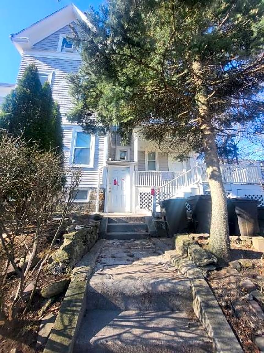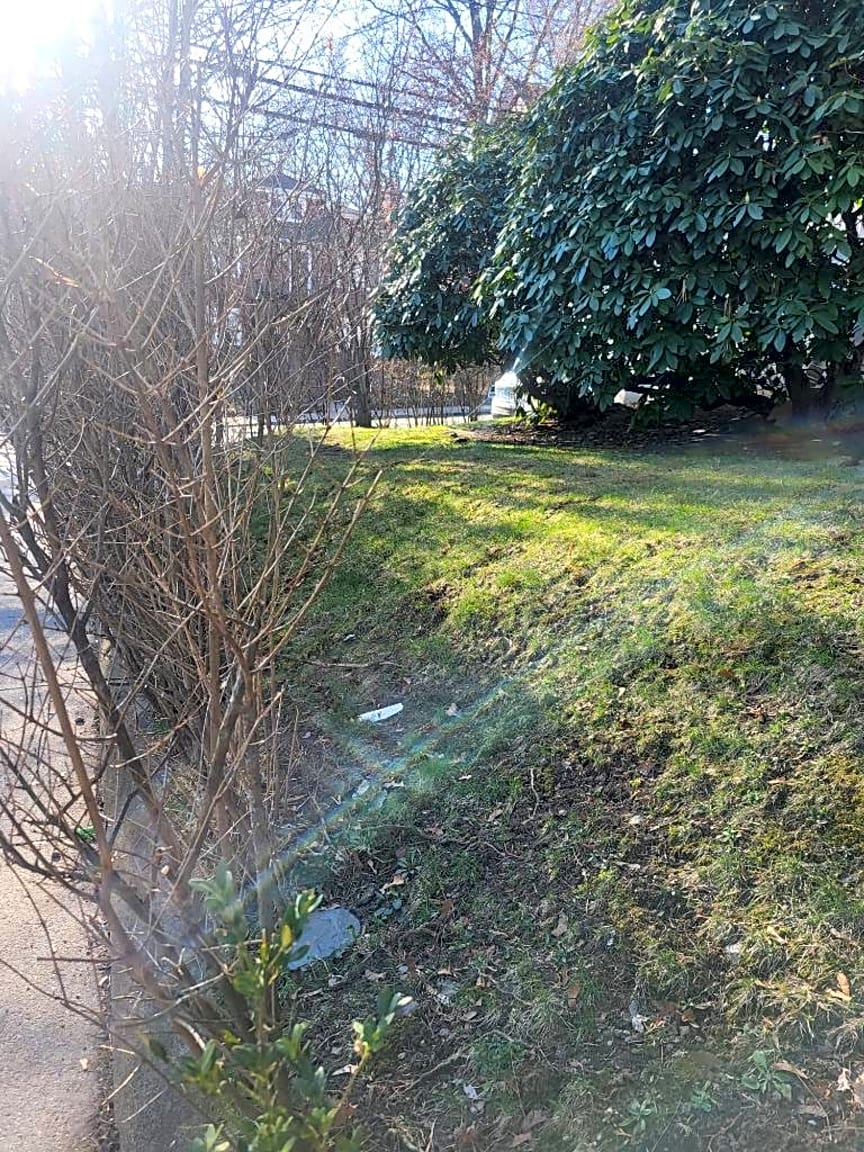 - Loose trash in between trash barrels that are stored along the Greycliff Rd side of house.