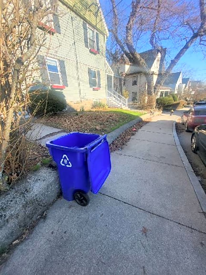 - Blue recycle containers between 16-18 Dustin st been on sidewalk for 3 weeks apparently doesn’t belong to any residents no one seems to claim it