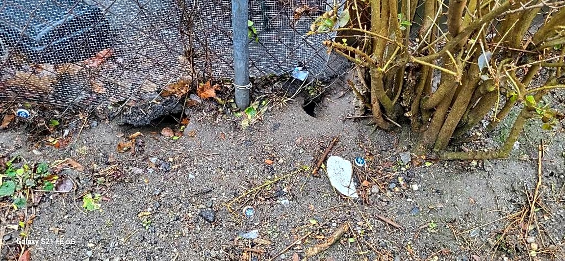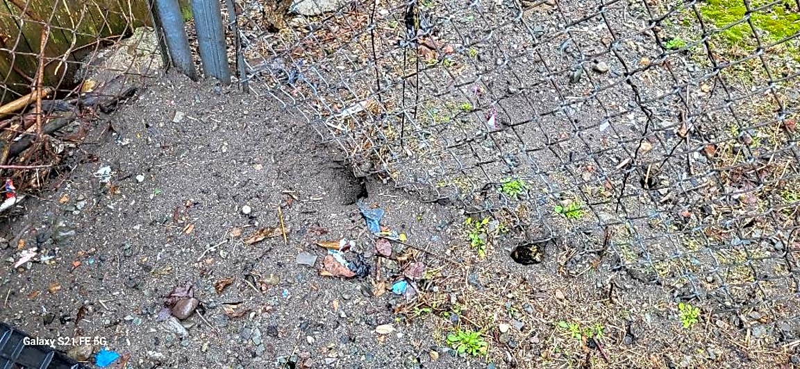 - More rat activity and more rat holes in parking lot along border and behind the dumpster, but there appears to be no steps taken to address issue by property owner