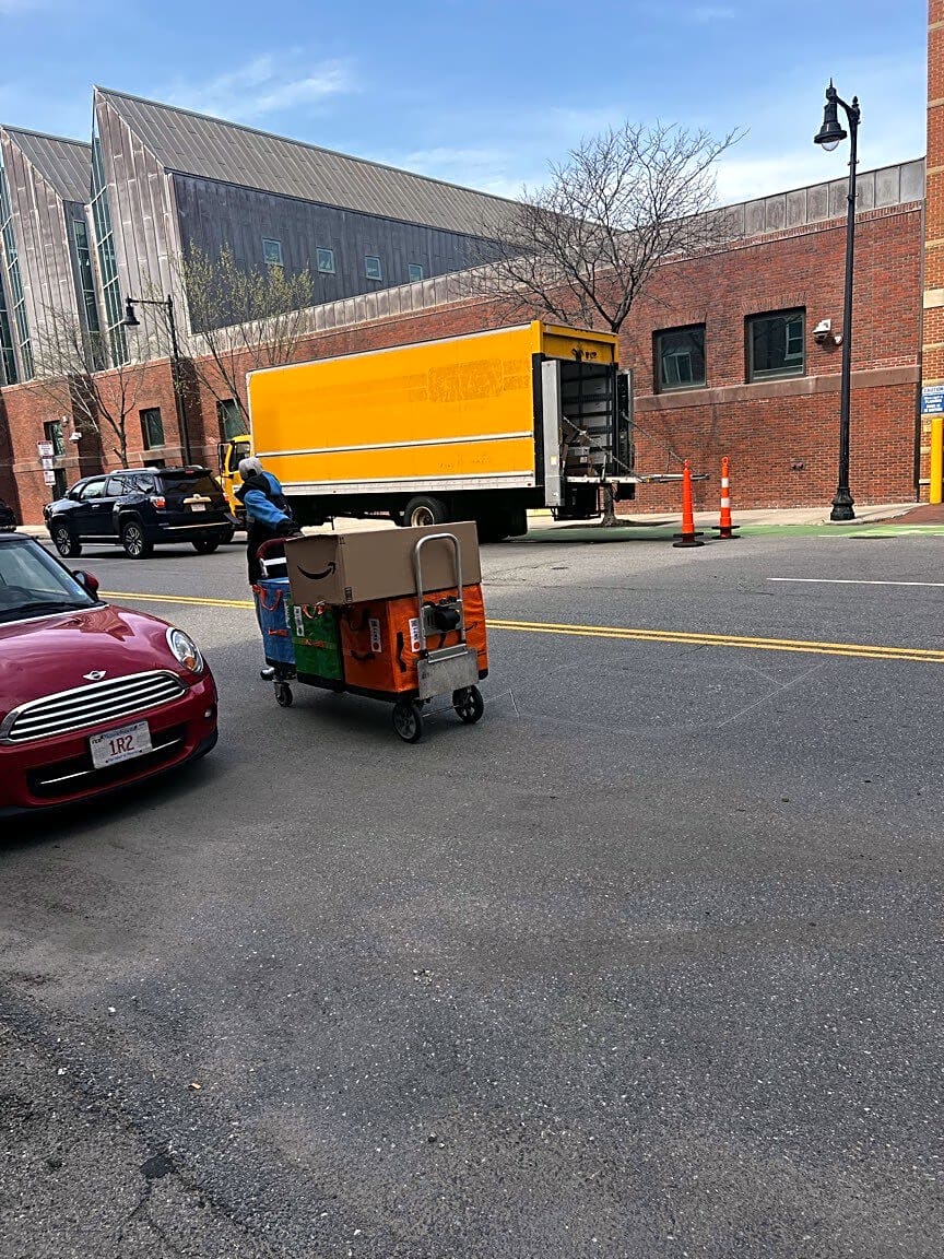 - Large AMAZON carts in the street into oncoming traffic. City of Boston - this is dangerous. They are on the sidewalks, streets, bike path. Why is this allowed? 3:37pm April 16 | Case (SR) Type: [Consumer Affairs] Referred To: [CONSUMER AFFAIRS & LICENSING]