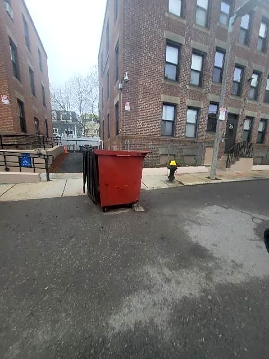- Rubbish is placed out well in advance of pickup | Exact location: [front]