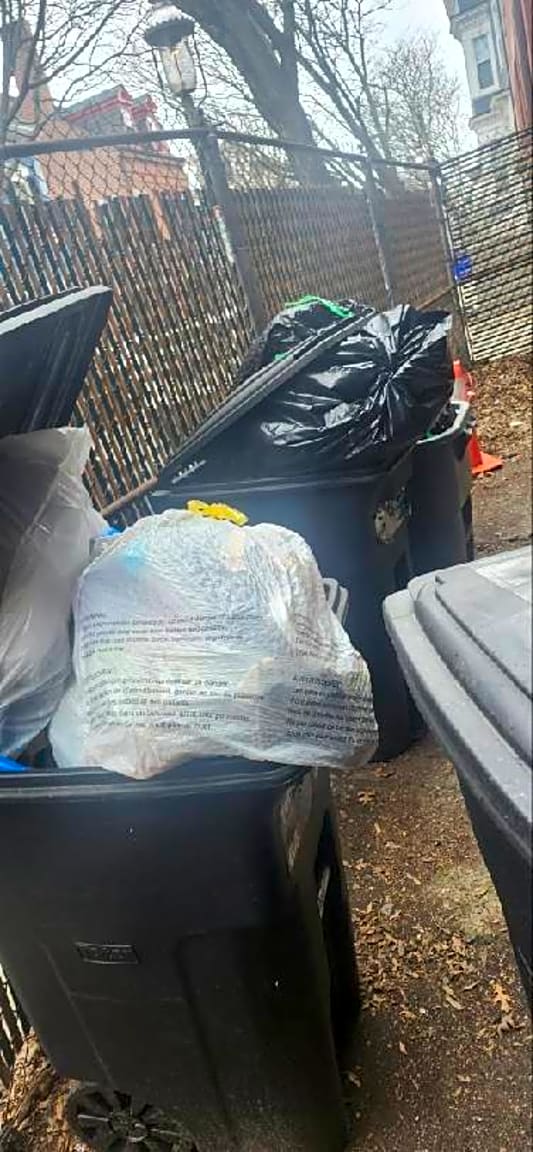 - Other | Details: [trash not put out for 3 weeks, overflowing, dead rats etc] Exact location: [side rear in a fenced enclosure]