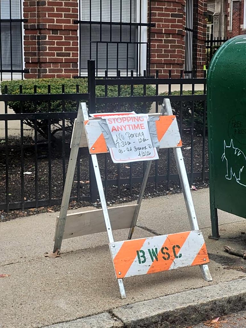 - Orange and white signs being used as space savers, well over a month since the last snowfall.