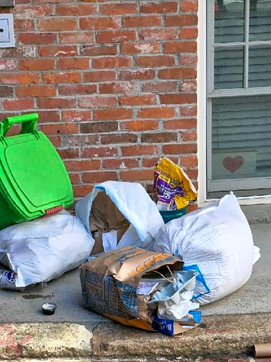 - Trash dumped outside of door