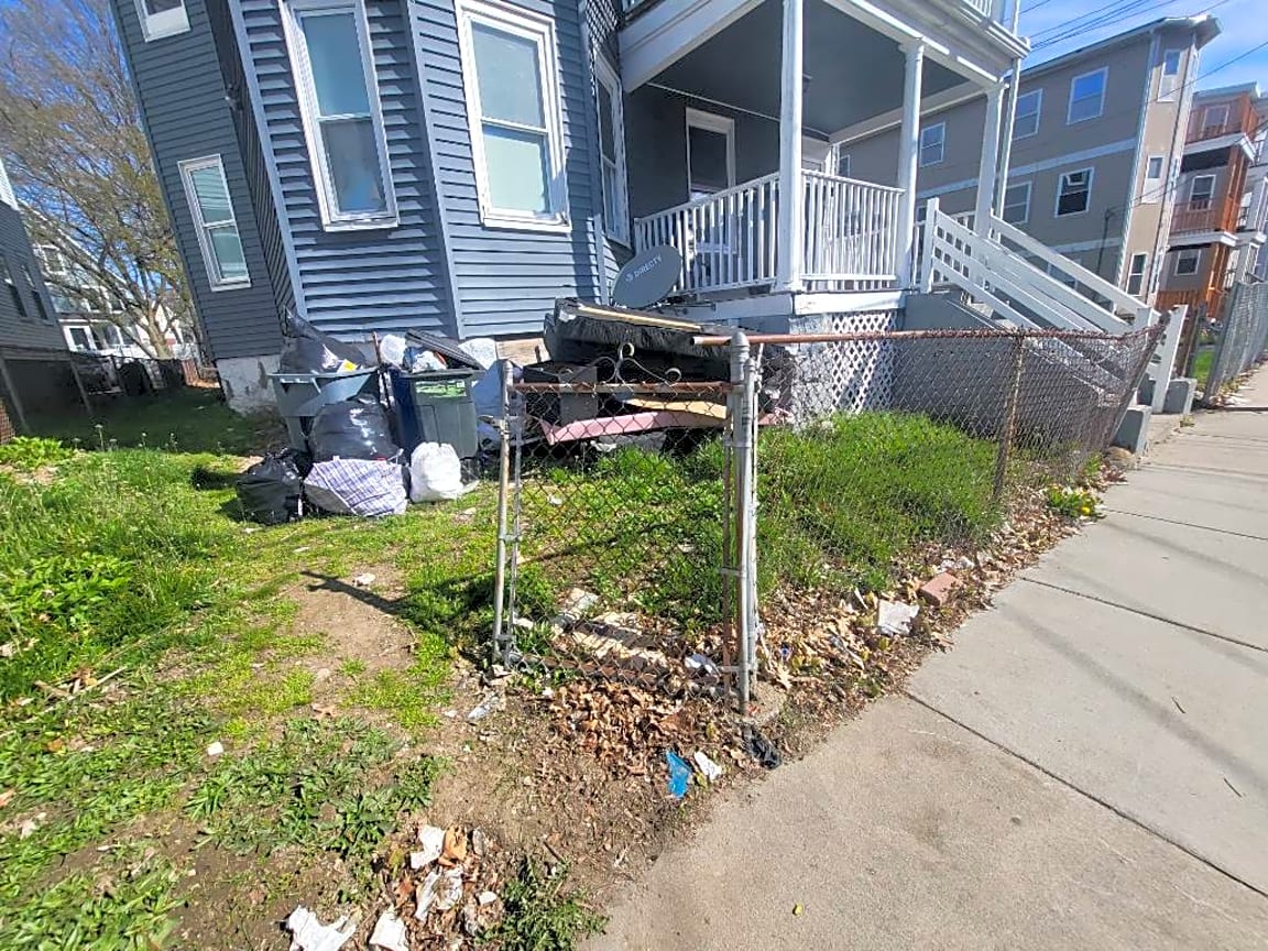 - 43 Theodore St. in Dorchester. trash in the yard rodents crawling around and mattresses and other junk in the front yard.