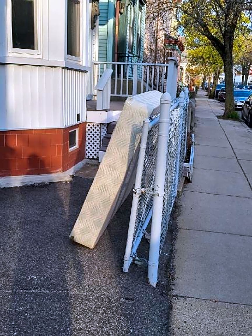 Resolved. Citation issued for improper storage of mattress.