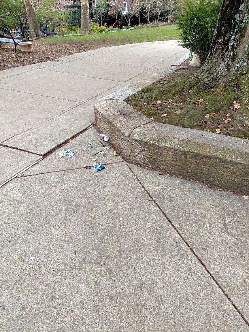 - Needles are strewn on the southwest corridor near Follen Street and Braddock Place.