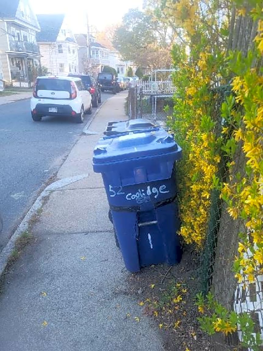 - These barrels have been blocking the sidewalk since Thursday afternoon. And they stink! There is an address written on them so Code Enforcement knows who to cite.