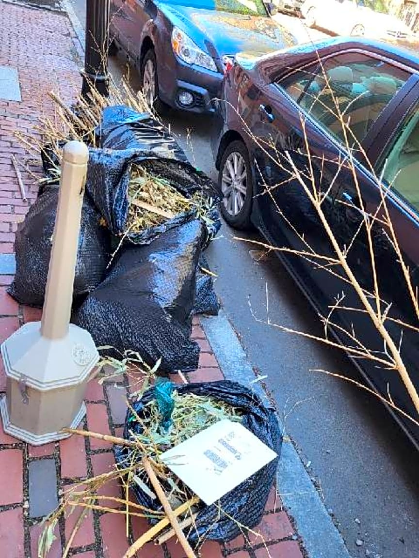 - There appears to be bags of discarded shrubbery land other assorted trash that has been here right before the alley since last week.