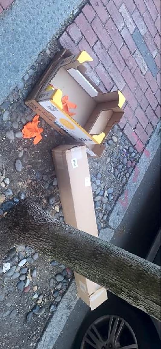- large pieces of cardboard left on sidewalk after trash day | Witnessed incident: [No]