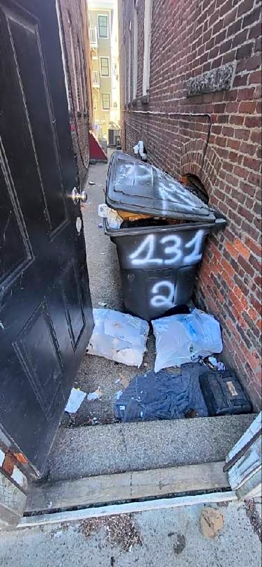 - Other | Details: [All kinds of trash/debris!!!] Exact location: [In the Alley]