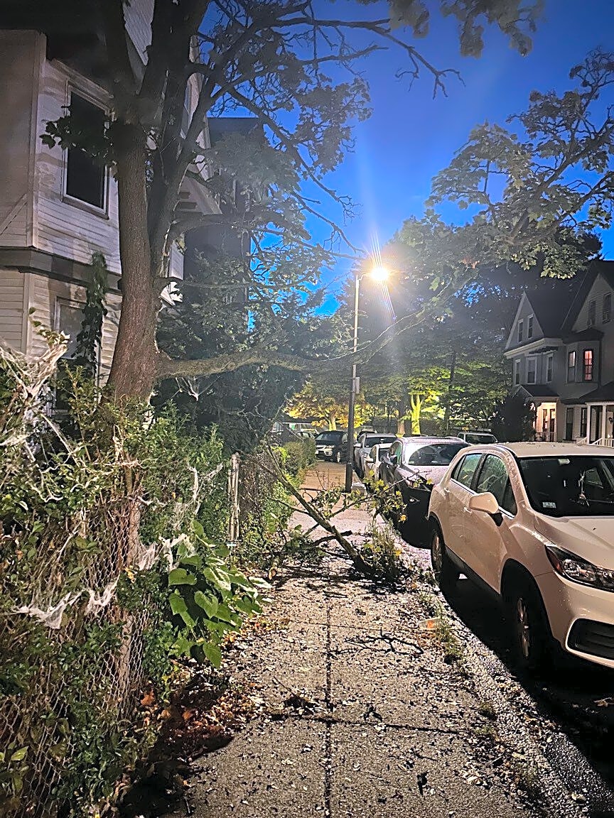 - Branches down off a tree on sidewalk on Anson st