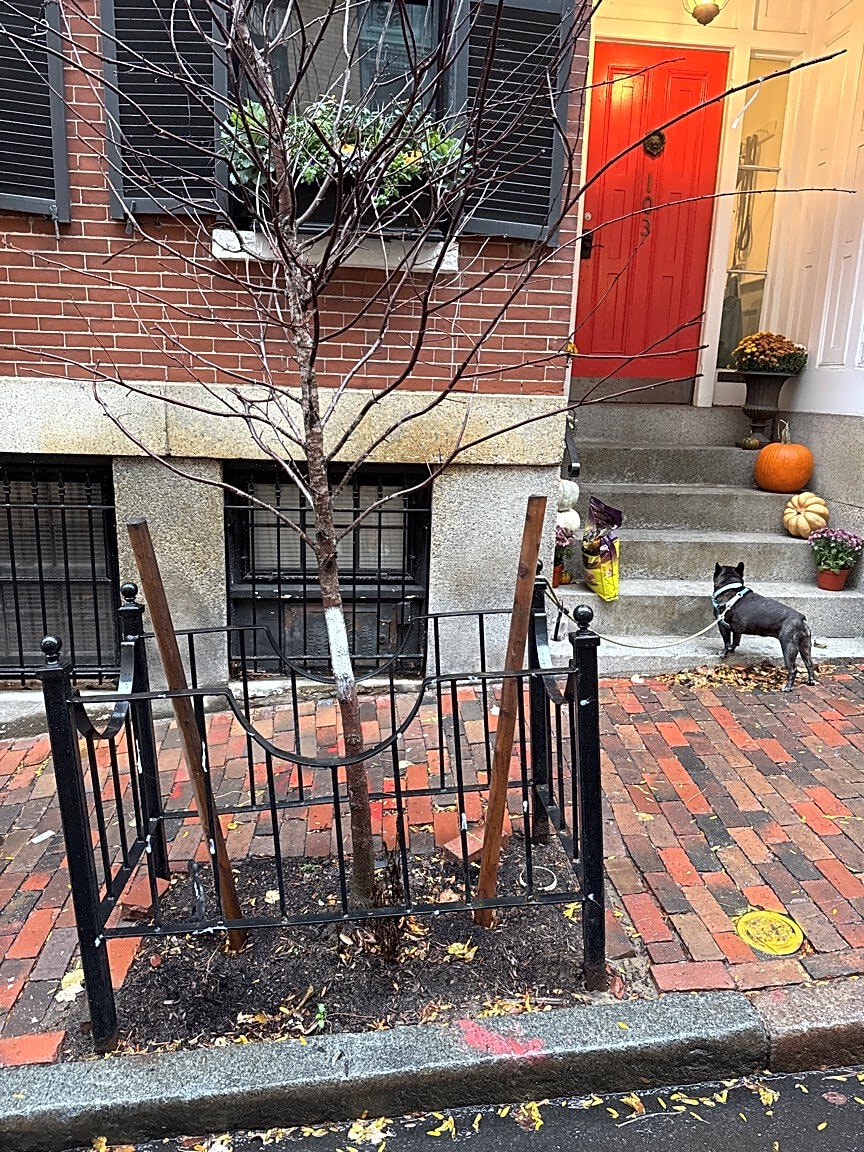 Noted. The tree is marked for replacement and will be replaced prior to December 15th. The contractor who just planted the trees in Beacon Hill is different then the contractor who planted the dead tree in question. If you have any questions please call 617-635-8733.