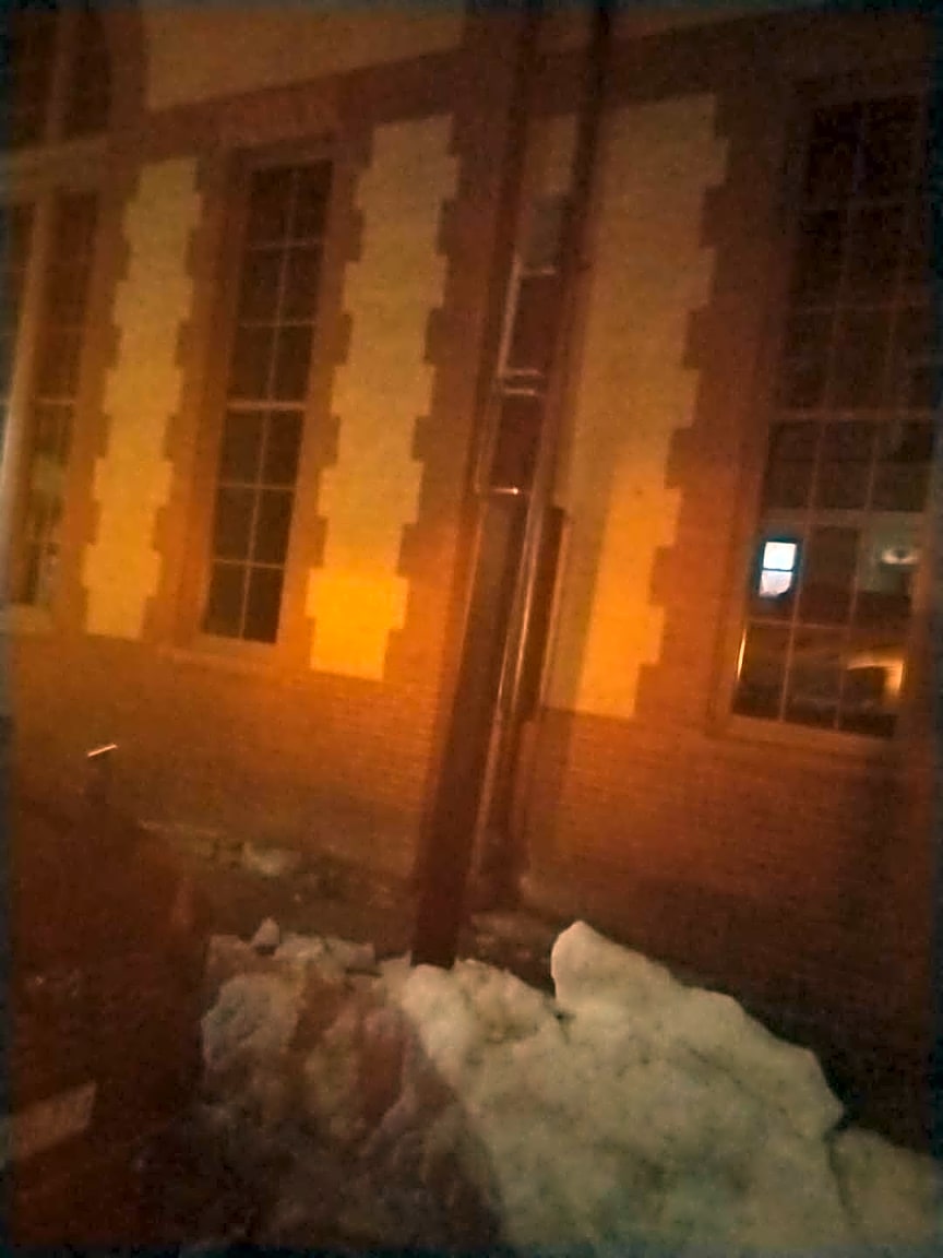 - Glass streetlight cover broke from falling snow and glass over sidewalk. Dangerous. Can it please be cleaned up and replaced? Or Norway street side of building. Thanks.