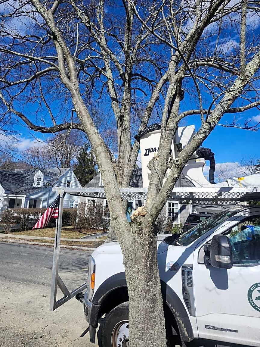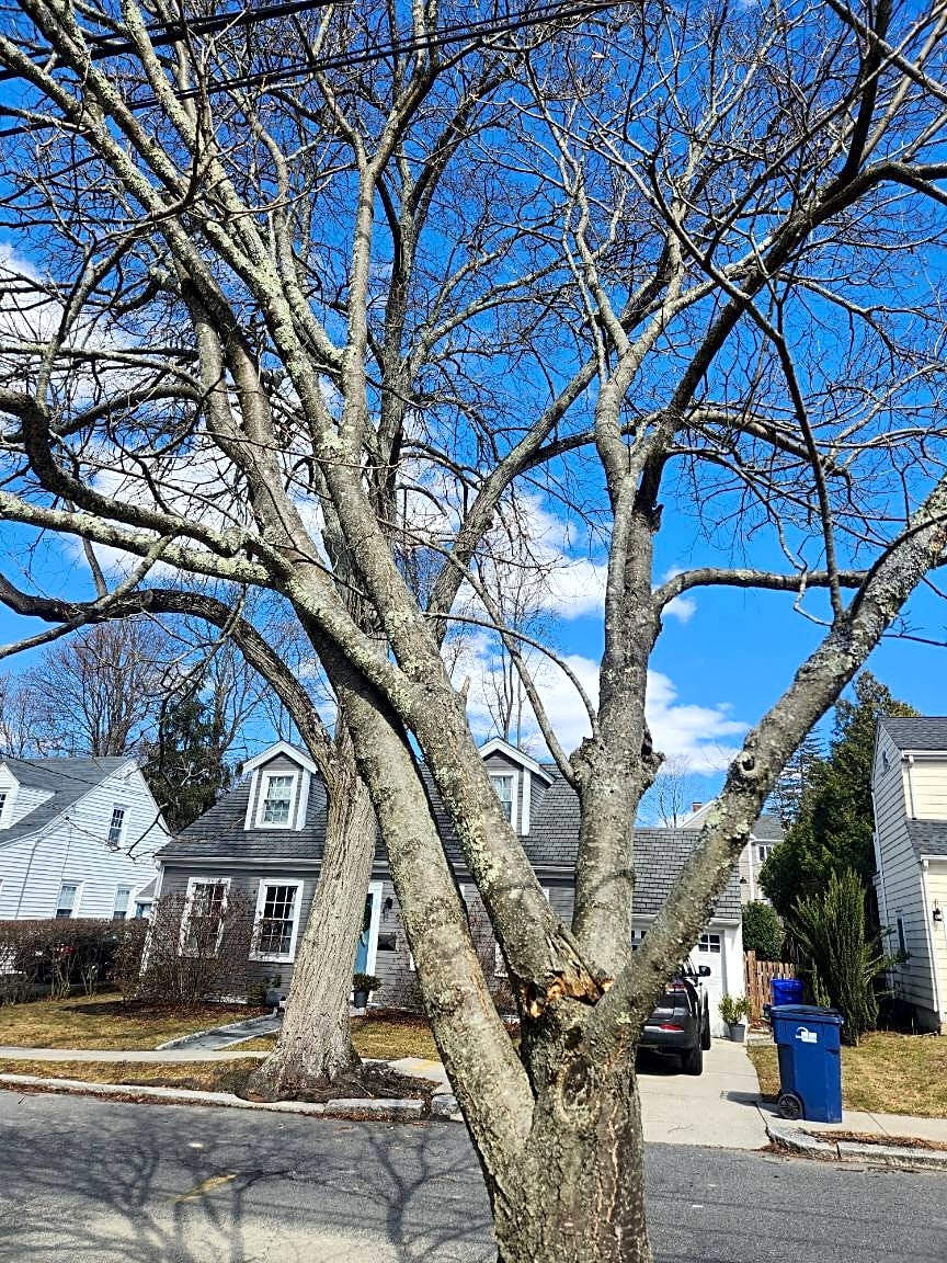 - Tree in hellstrip damaged last night. Branch leaning close to electric lines.