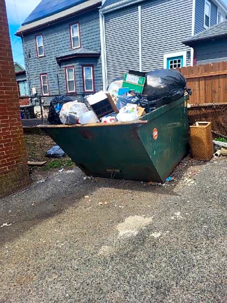 1037 River St, Hyde Park, Ma, 02136Overflowing dumpster in back of the property