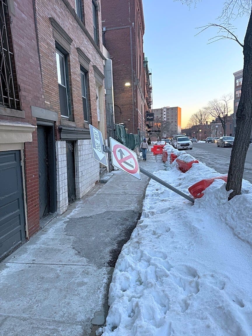 30 Whitfield St, Dorchester, Ma, 02124The pole is down and blocking the crosswalk, it is an easy trip hazard. UPDATE: caller states the pole is sign is under the snow in front the stairs and it is a hazard for pedestrians. Caller would like the sign to at least be moved to make it safe. | Public safety sign: [Yes] Type of sign: [No Parking sign.] Is the pole still there: [Yes]