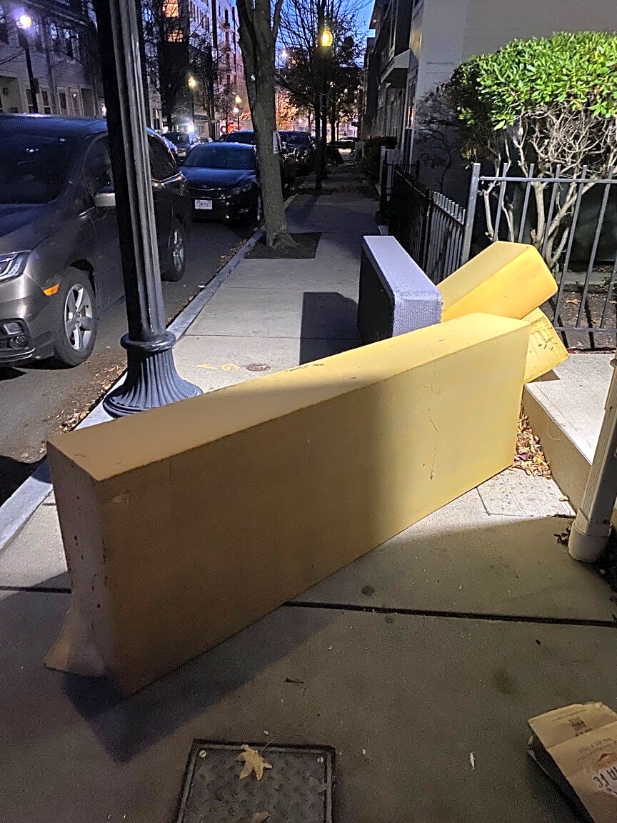 23 Landing St, East Boston, Ma, 02128Couch out illegally. Blocking entire sidewalk. Cannot pass on wheel chair or stroller house 23