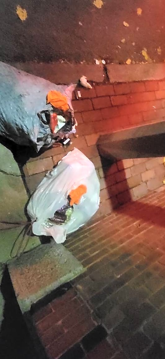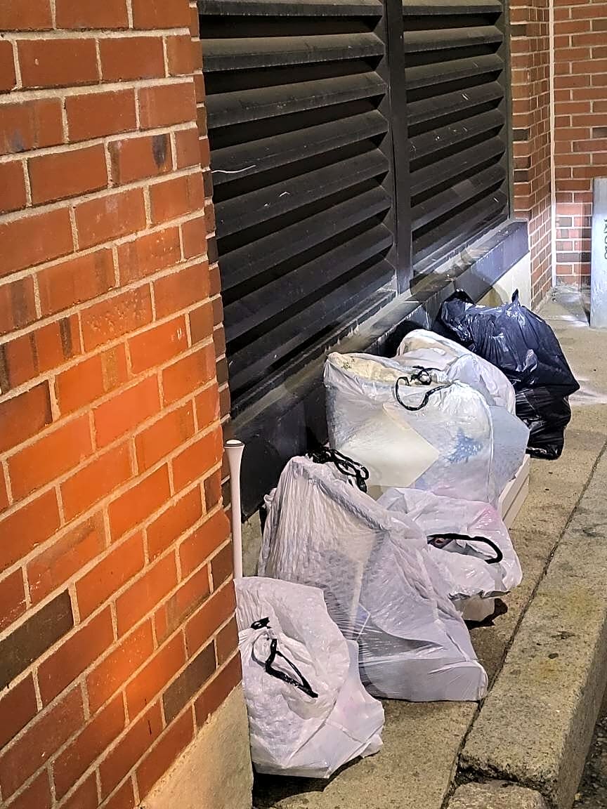 12 16 Worcester Sq, Roxbury, Ma, 02118Garbage bags placed outside after pick up at number 28, 24, 12.