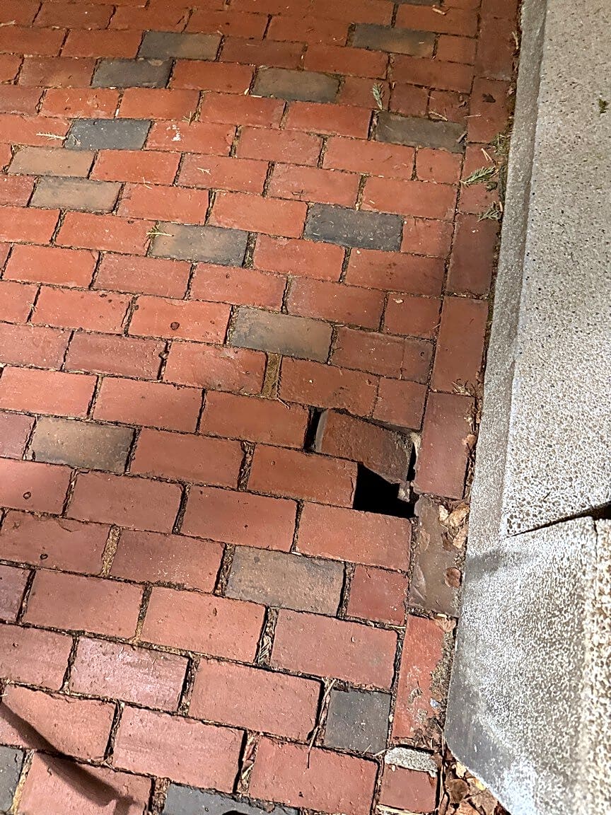 288 Foster St, Brighton, Ma, 02135Loose trash around back of house on patio and to left of back steps