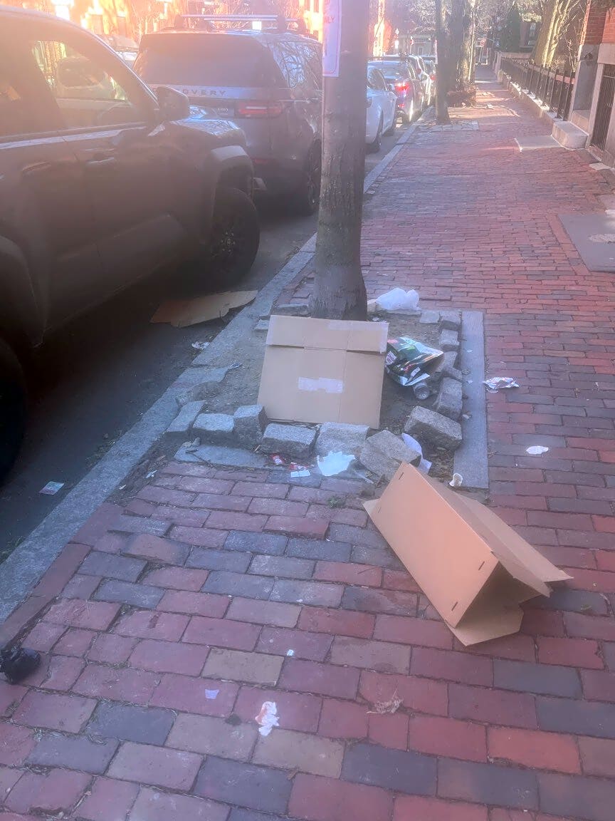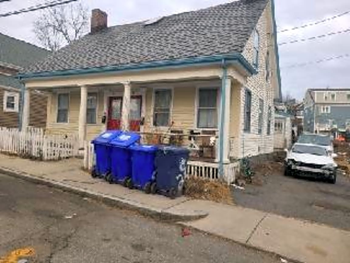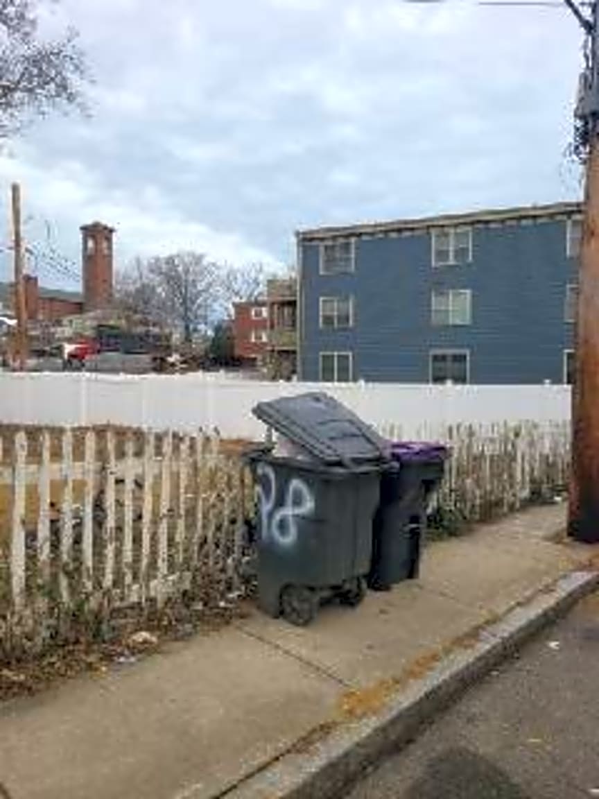 295 Foster St, Brighton, Ma, 02135Loose trash in between trash barrels by side of house