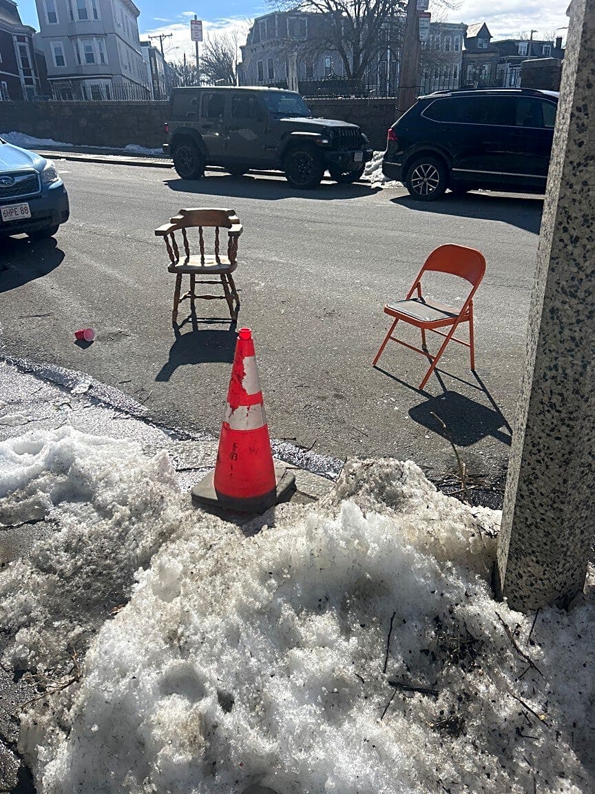 26 Columbia Rd, Dorchester, Ma, 02121const. reporting mulitple space savers on the road |